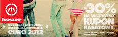Każdy klient, który w dniach od 31-05-2012(czwartek) do 03-06-2012(niedziela) włącznie zrobi zakupy pełnowartościowych rzeczy marki House i posiada specjalny kupon rabatowy z oryginalnym numerem otrzymany drogą mailową z Newslettera -30% lub pobrany z Facebook’a -30% otrzyma rabat na wszystkie zakupione rzeczy pełnowartościowe w wysokości podanej na kuponie.