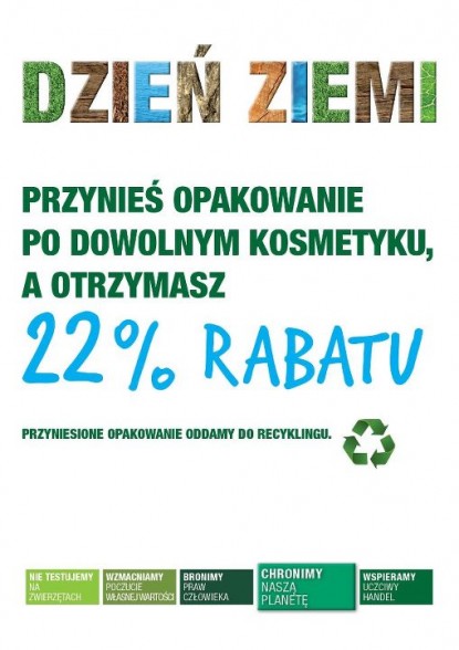 Do 14 maja w sieci sklepów The Body Shop trwa wyjątkowa promocja. Przynosząc opakowanie po dowolnym kosmetyku, otrzymacie 22% rabatu. Wszystkie przyniesione opakowania oddawane są do recyklingu.