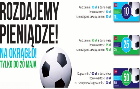– 100 zł, otrzymasz bon o wartości 50 zł na następne zakupy za min. 100 zł.