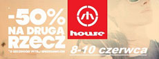 Każdy klient, który w okresie trwania promocji od 08.06.2012 (piątek) do 10.06.2012 (niedziela) włącznie zakupi dowolną rzecz marki House będzie mógł zakupić drugą, tańszą rzecz z rabatem -50%.
