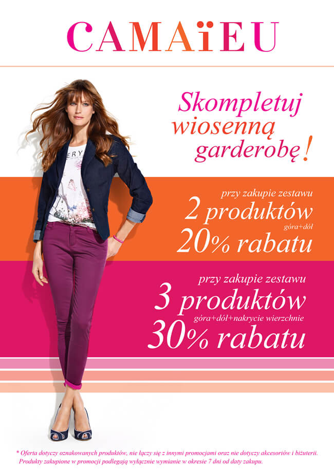 W najbliższych dniach, tj. od 25 do 30 marca w sklepach Camaïeu możesz skorzystać z wiosennej akcji rabatowej.
