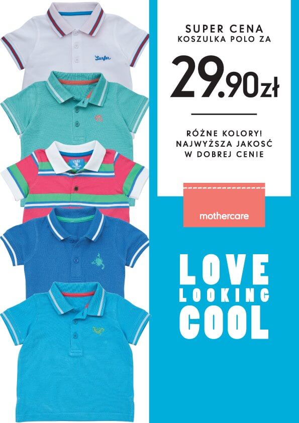 W sklepach Mothercare możecie skorzystać z nowej promocji. Tym razem oferta specjalna dotyczy koszulek polo.