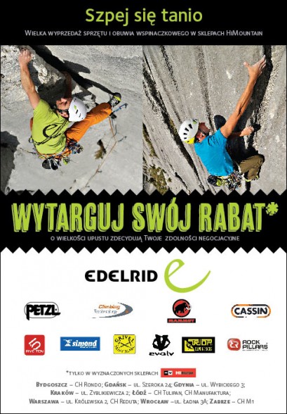 W sklepach HiMountain właśnie trwa nie lada okazja by wyrwać tanio świetny sprzęt takich firm jak: Ederlid, Petzl, Climbing Technology, Simond, Grivel, Mammut, Cassin, Evolve, Five Ten, Triop, Rock Pillars i wielu wielu innych.