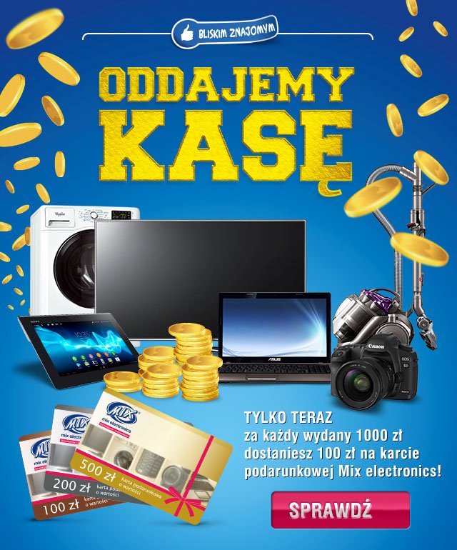 W sieci sklepów Mix Electronics rozpoczęła się nowa promocja, dzięki której za każdy wydany 1000 zł otrzymasz 100 zł na karcie podarunkowej Mix Electornics!