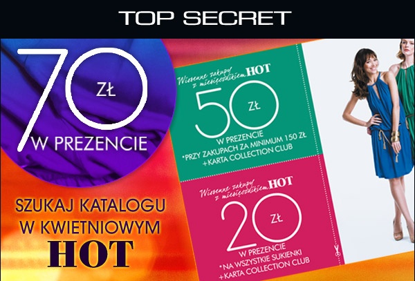 W kwietniowym wydaniu miesięcznika Hot znajdziecie katalog Top Secret z kuponami rabatowymi na wiosenną kolekcję!
