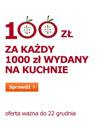 Teraz kupując dowolny zestaw szafek kuchennych można otrzymać kartę rabatową o wartości 100 zł za każdy 1000 zł wydany na wyżej wymienione meble.