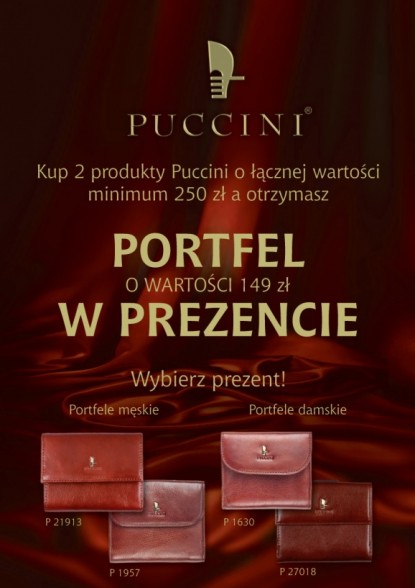 Wybrane modele portfeli już od 99 zł., a przy zakupie dwóch produktów o łącznej wartości powyżej 250 zł. portfel o wartości 149 zł. gratis. Promocja obowiązuje do końca grudnia lub do wyczerpania zapasów.