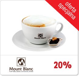 Od 10 do 12 sierpnia 2012 r. dla klientów płacących kartą debetową lub kredytową mBanku i MultiBanku sieć pijalni i kawiarni Mount Blanc przygotowała niespodziankę: specjalny rabat 20% na cały asortyment.