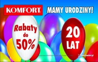 Sklepy Komfort w tym roku obchodzą okrągły jubileusz 20-lecia działalności na polskim rynku. Z tej okazji Komfort dla swoich klientów przygotował specjalną akcję urodzinową.