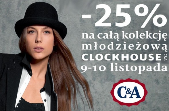 Już od najbliższego piątku, tj. od 9 listopada w sklepach C&A asortyment z kolekcji młodzieżowej Clockhouse kupicie z 25% rabatem!