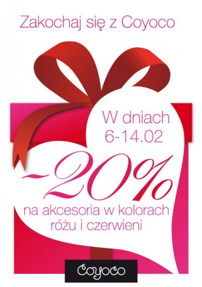 Tylko w dniach od 6 do 14 lutego br. wszystkie akcesoria w kolorach różu i czerwieni Coyoco możecie kupić aż 20% taniej!