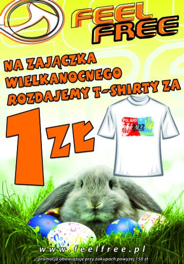 Wielkanocna promocja w sklepach Feel Free właśnie trwa! Na zajączka Feel Free rozdaje T-shirty za 1 zł.