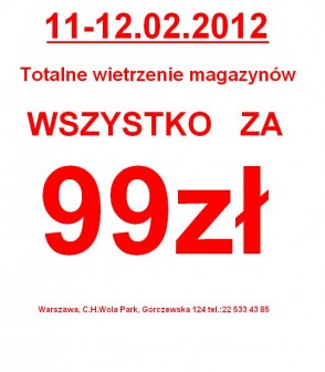 W te dni wszystko, co aktualnie będzie się znajdować w salonie, będzie w cenie 99zł.
