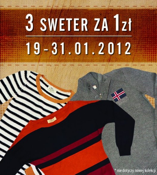 Promocja obowiązuje od 19 do 31 stycznia br. i dotyczy wszystkich swetrów damskich i męskich z kolekcji jesienno-zimowej.