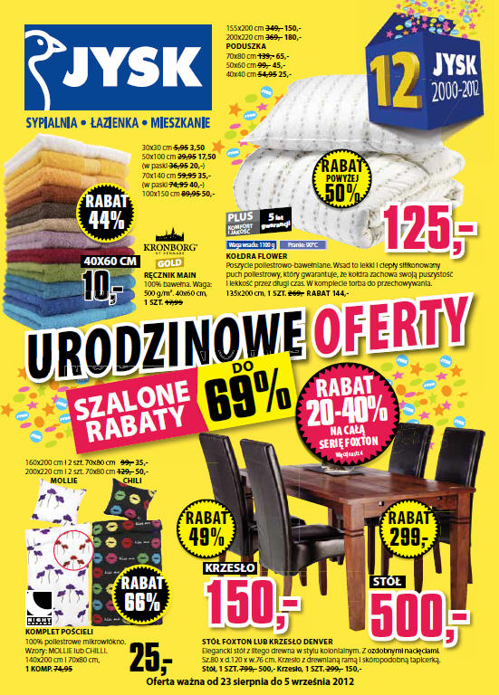 Z okazji 12-tych urodzin sklepów Jysk, sieć przygotowała specjalną ofertę promocyjną. Szalone rabaty do 69%!
