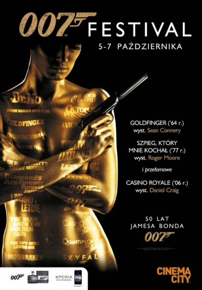 Cinema City dedykuje pierwszy weekend października fanom Jamesa Bonda! Przygody najsłynniejszego szpiega wszechczasów zakrólują na srebrnym ekranie już w dniach 5 – 7 października. Widzowie wybranych kin Cinema City będą mogli obejrzeć aż trzy wcielenia najsłynniejszego Agenta jej Królewskiej Mości. Takiej gratki nie można przegapić! Uczcij 50-lecie Bonda w Cinema City, a już 26 października przygotuj się na zupełnie nowego Agenta 007 w filmie „Skyfall”.