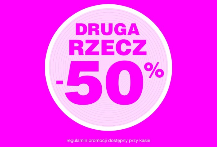 Teraz przy zakupie dwóch rzeczy, jedną z nich – tańszą – kupicie za połowę ceny. Promocja obejmuje cały asortyment z wyłączeniem akcesoriów.