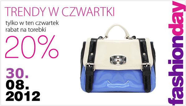 Czas trwania promocji: 20/10/2012 do: 21/10/2012 Klienci, którzy przyjdą z wyciętym kuponem z magazynu Glamour oraz Claudia otrzymają: • 30% na torebki* *nie dotyczy torebek skórzanych • 20% na buty z tegorocznej kolekcji